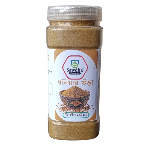 রান্নায় আসল স্বাদ এবং প্রাকৃতিক সুগন্ধ নিশ্চিত করতে আমরা নিয়ে এসেছি শতভাগ বিশুদ্ধ ধনিয়া গুঁড়া। বাছাইকৃত সেরা মানের আস্ত ধনিয়া বীজ রোদে শুকিয়ে স্বাস্থ্যসম্মত উপায়ে এটি প্রস্তুত করা হয়। এতে কোনো কৃত্রিম রং বা প্রিজারভেটিভ ব্যবহার করা হয়নি, যার ফলে রান্নায় পাওয়া যায় একদম ঘরোয়া স্বাদ।
